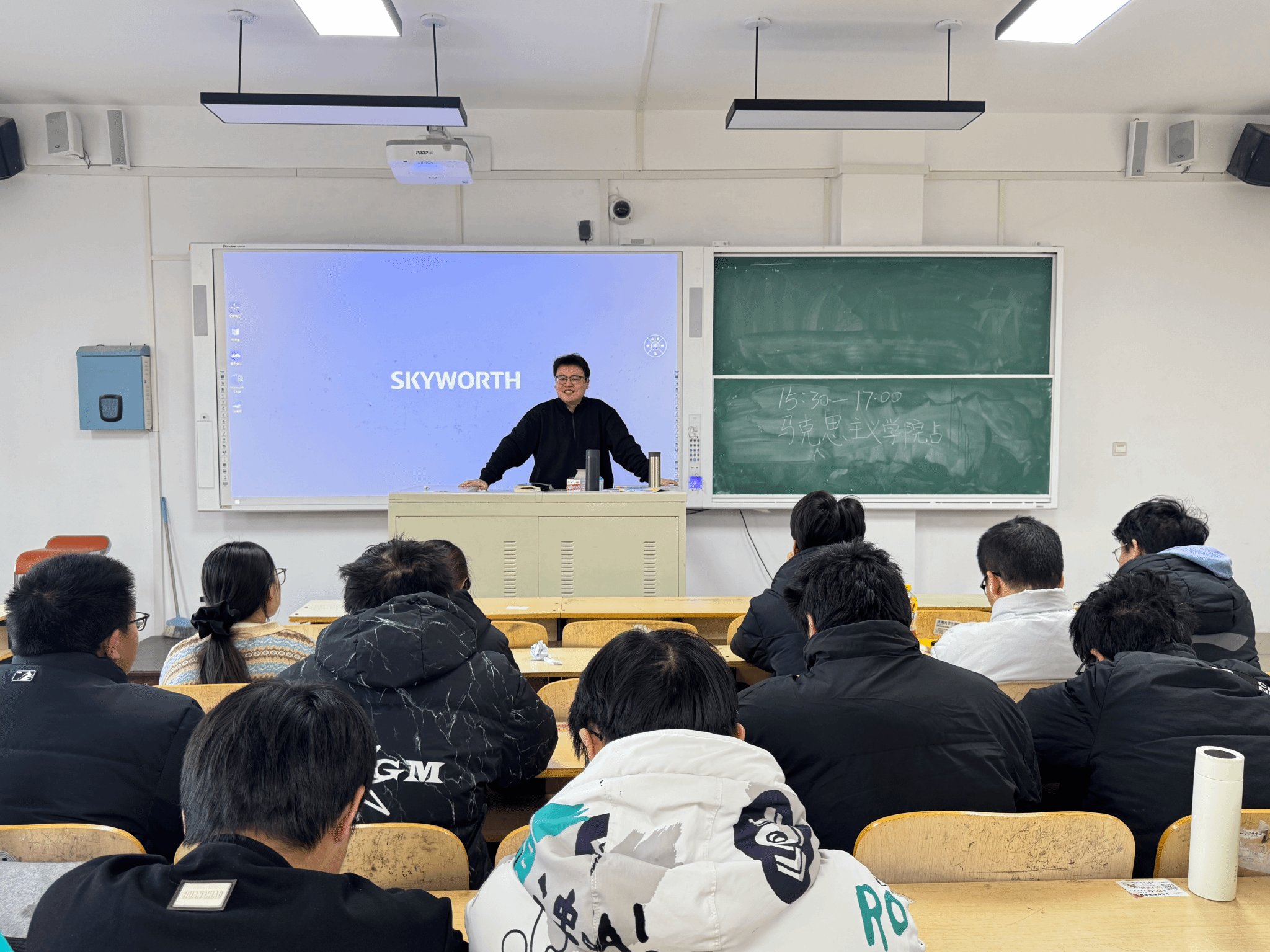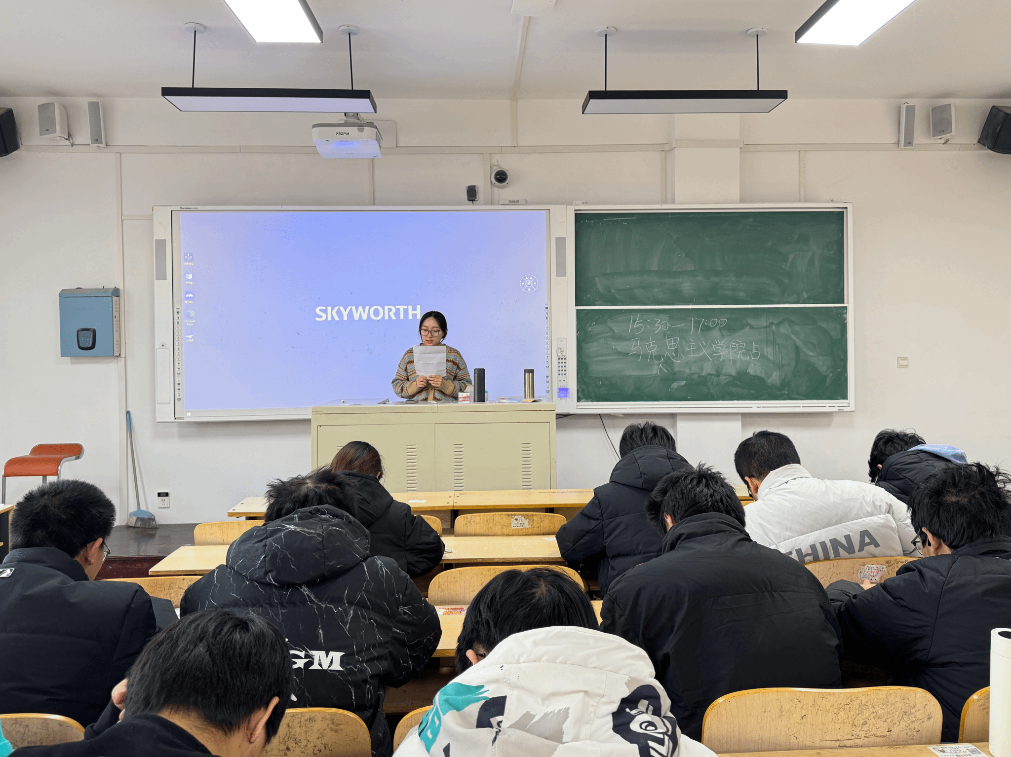 2025年12月25日,马克思主义学院第二十期“悦读经典”分享会在2号教学楼A302教室举行,刘同赫老师和2025级全体学生共同参加此次分享会。