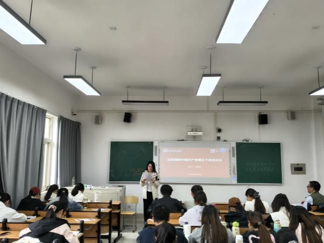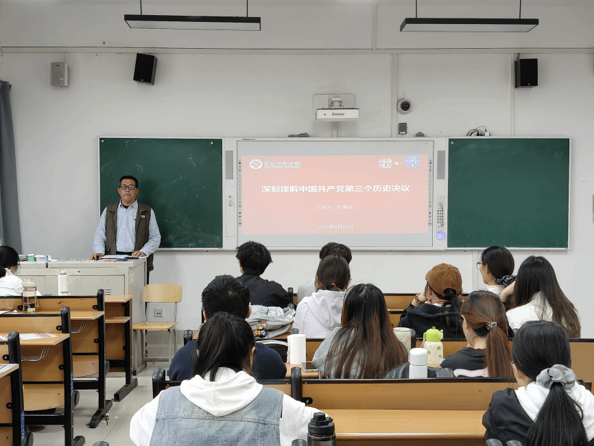 为引导青年学子研读经典、感悟初心,提升学生理论素养与阅读能力,2026年4月16日,马克思主义学院国是讲坛第八十一期暨悦读经典分享会在2号教学楼A310举行。马克思主义学院刘振光教授应邀作《深刻理解中国共产党第三个历史决议》专题报告,2024级全体学生、2025级部分学生参加此次活动。