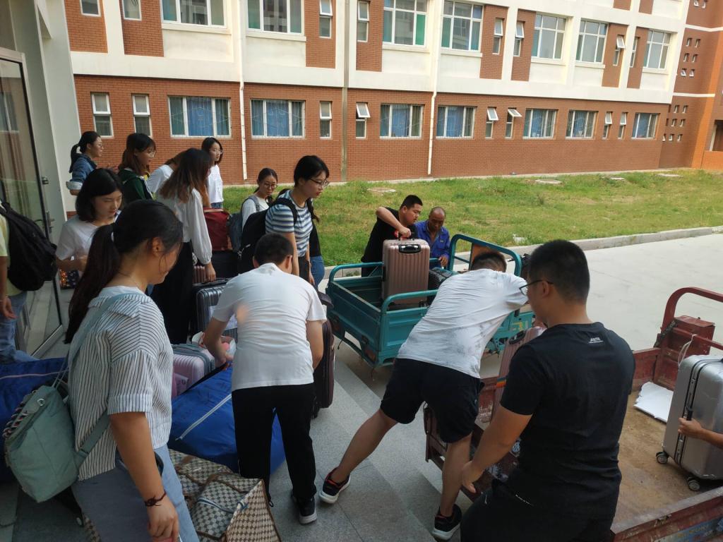 同学们在搬运行李