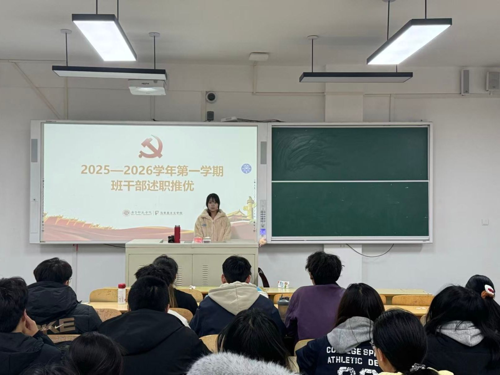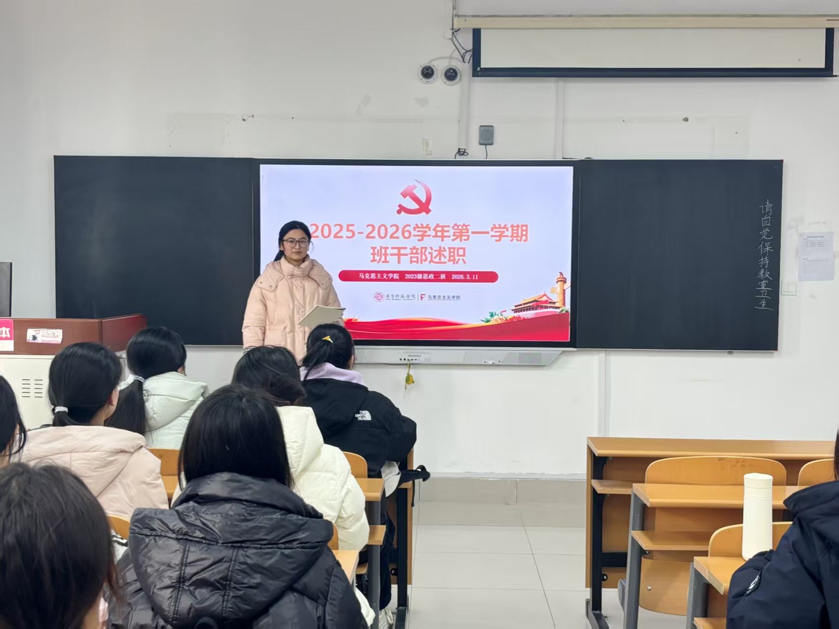 为进一步加强学生干部队伍建设,夯实班委履职能力,凝聚班级建设合力,2026年3月12日,马克思主义学院在二教A207、A310举行2025年度班委述职大会,马克思主义学院全体学生参加会议。