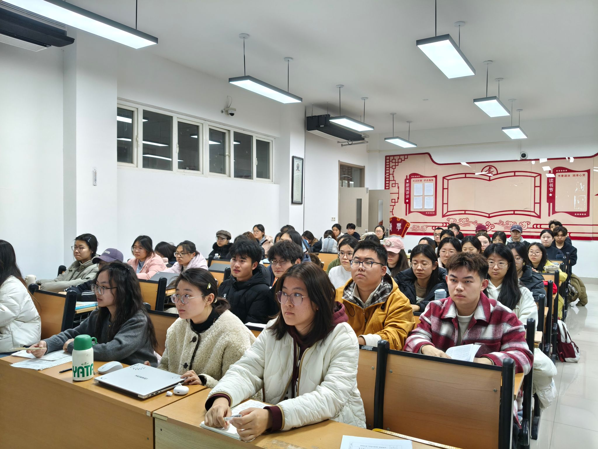 主讲人引导同学们要在勇于担当中展现政治底色,在埋头苦干中彰显青春本色,以顽强拼搏、锐意进取的姿态奋勇争先,为建设更加美好的祖国贡献青春力量。活动结束后,学院组织部分学生代表对主讲同学进行评分。