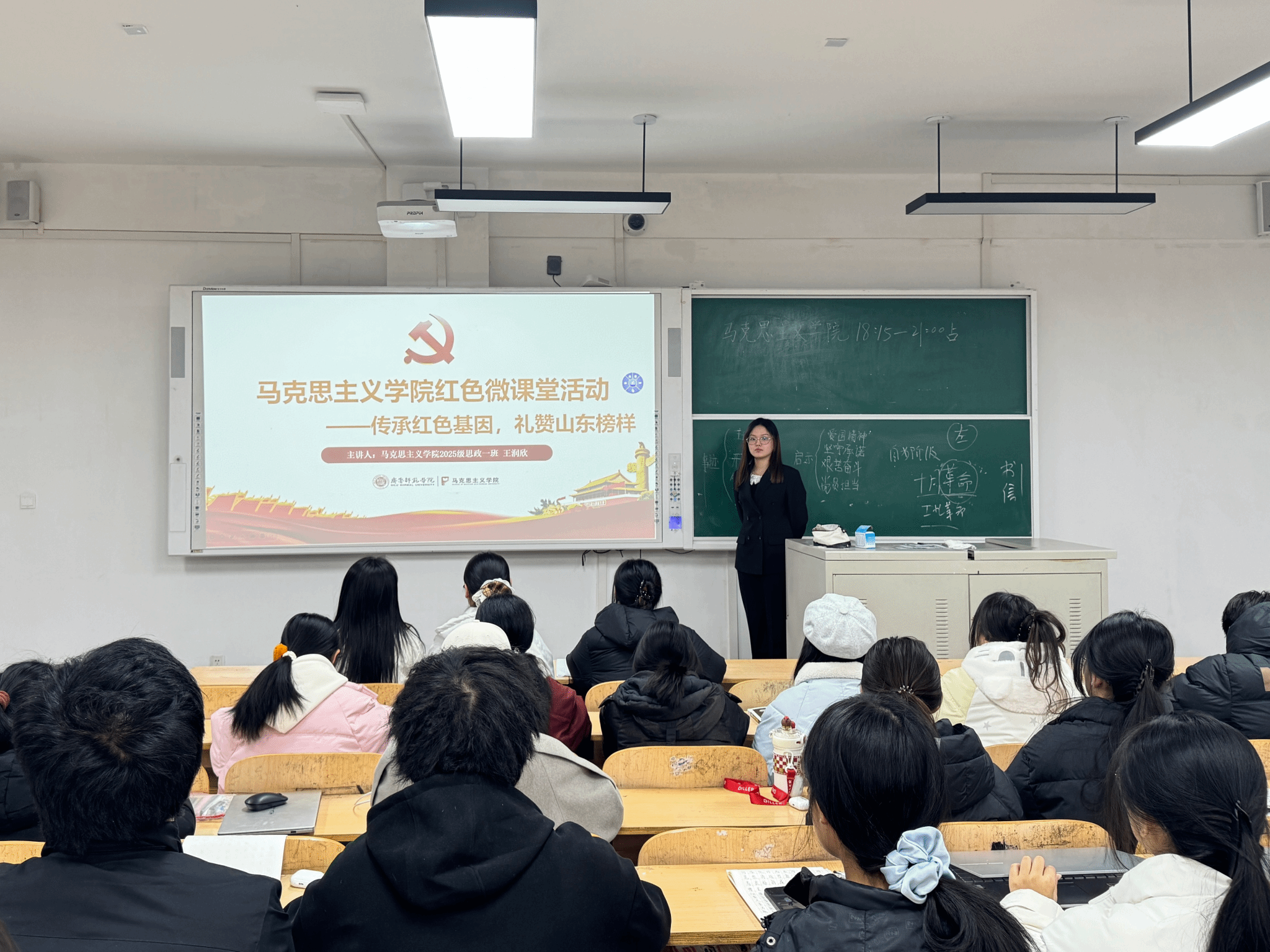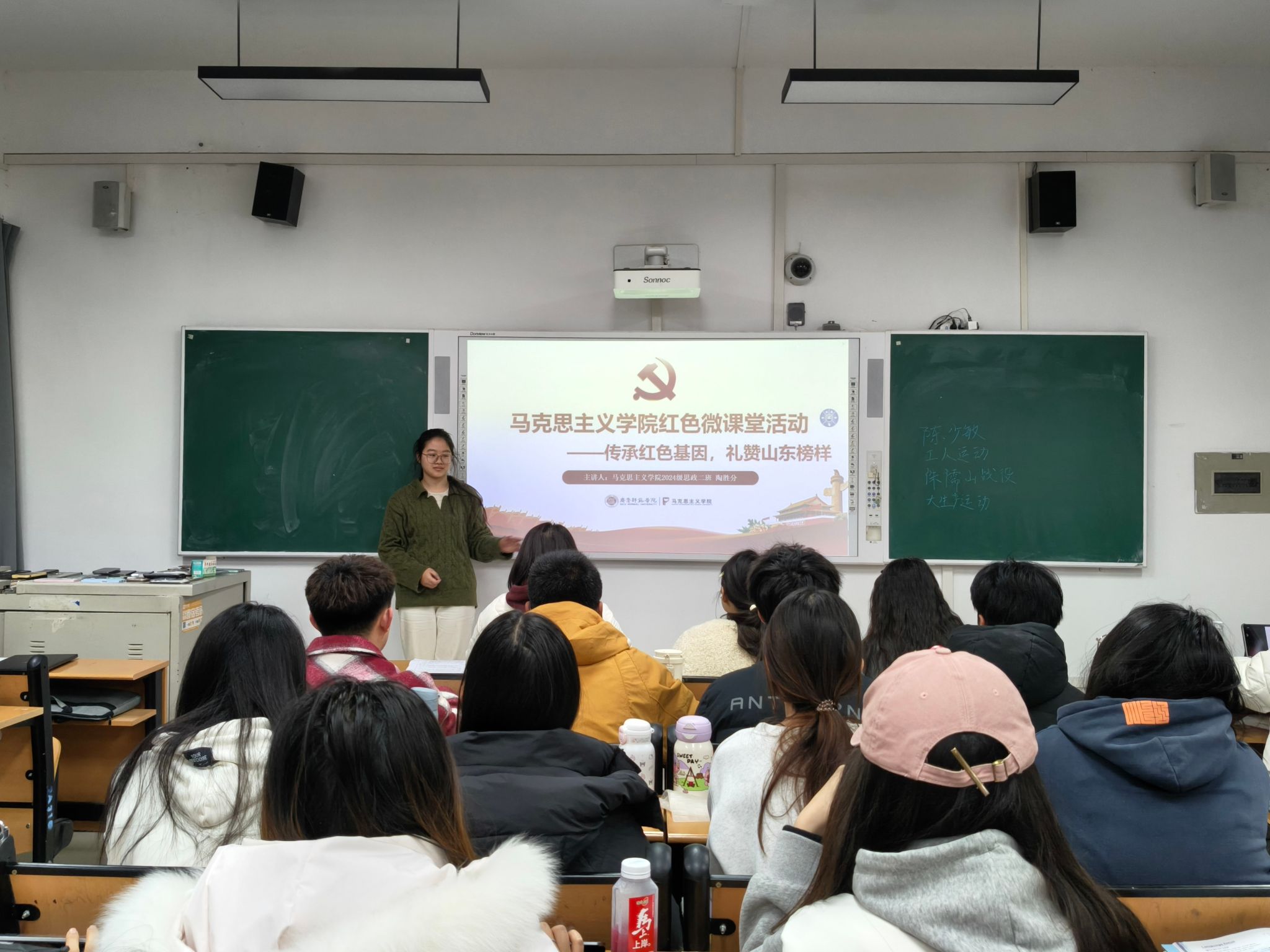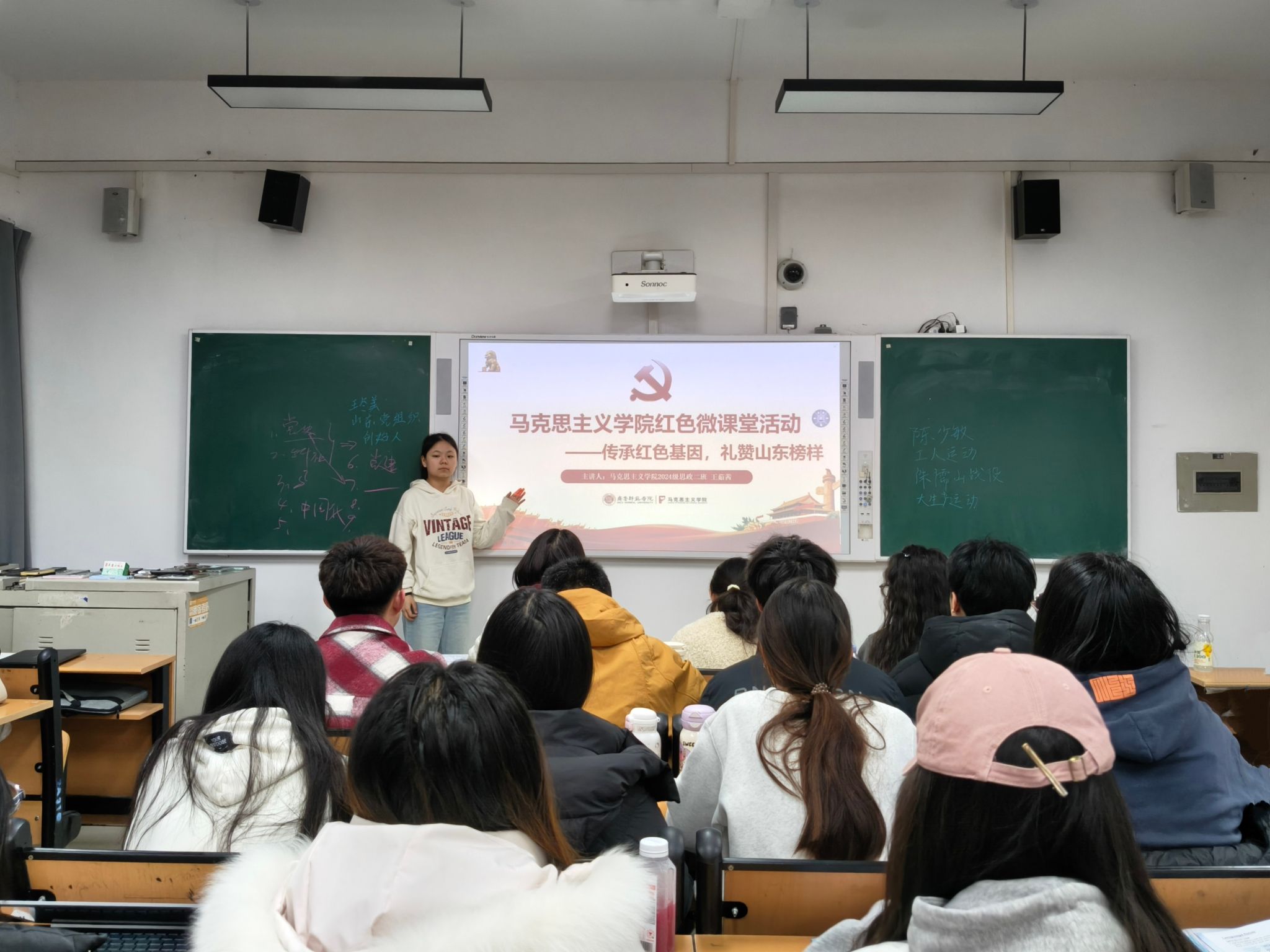 本期活动以“传承红色基因,礼赞山东榜样”为主题。孙煦然、王润欣、王茹茜等20位主讲人分别围绕中共一大代表王尽美、抗日英雄张自忠、沂蒙红嫂李桂芳等先进典型的感人事迹展开讲述,带领同学们重温峥嵘岁月中的忠诚与奉献,感悟新时代的初心与担当。一位位齐鲁榜样身上炽热的家国情怀,生动诠释了红色血脉的生生不息,让青年学子在沉浸式学习中深刻体悟红色精神的力量。