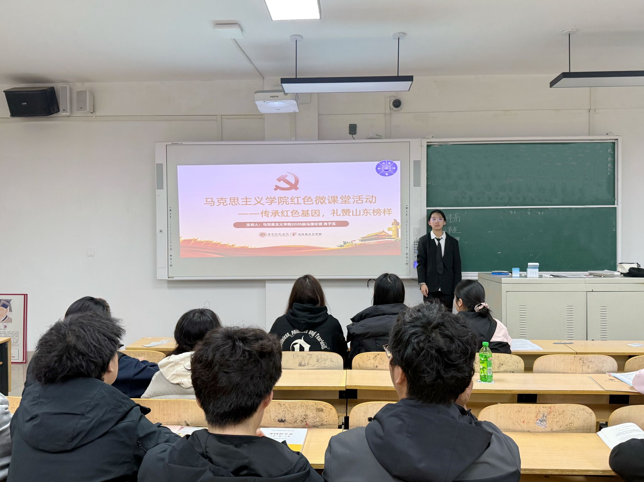 本期“红色微课堂”以“传承红色基因,礼赞山东榜样”为主题展开讲解。肖子玉、薛杰、李田雨等18位主讲人聚焦“全国劳动模范”刘嘉坤、“全国见义勇为道德模范”赵利、“盲人司令”牟光仪等先进典型事迹,生动诠释了新时代榜样纯粹的理想信念、坚定的责任担当与无私的奉献精神,有效强化了同学们的使命意识,激励大家深耕专业学习、锤炼过硬本领、提升综合素养。