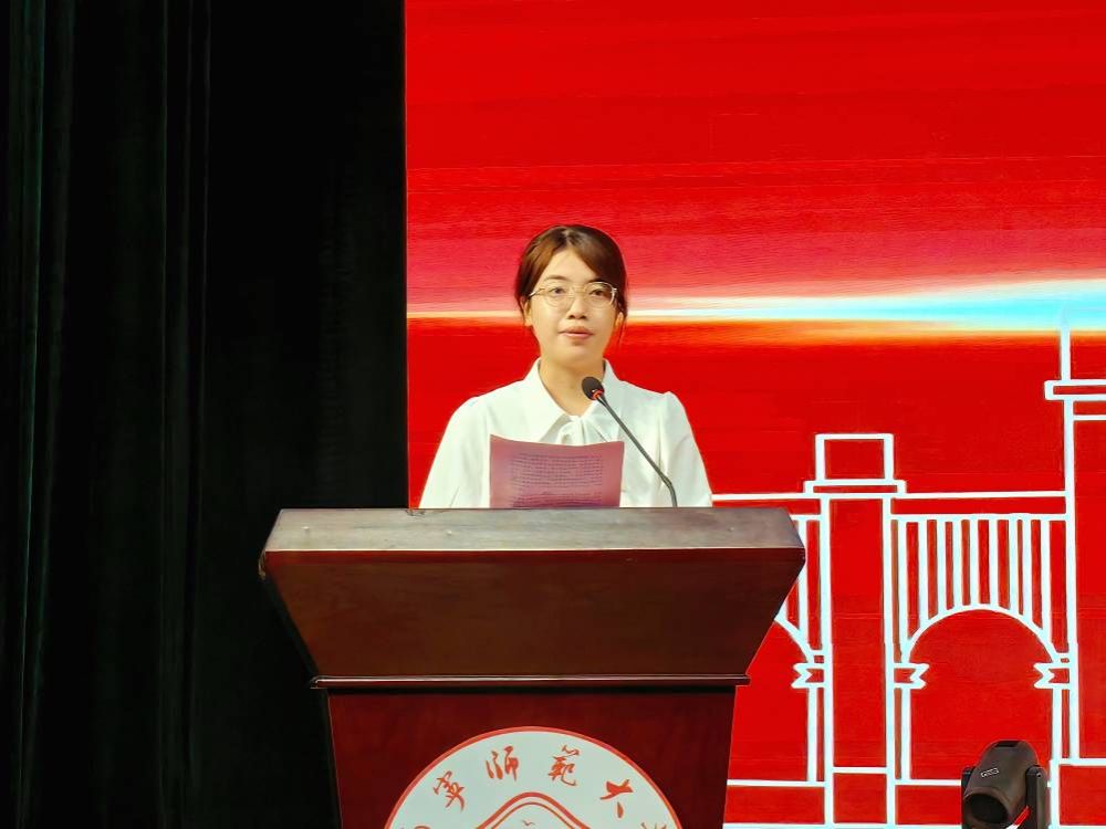 教师代表廖祥勇、高年级代表欧阳婷婷和新生代表张钰桐分别作了发言。