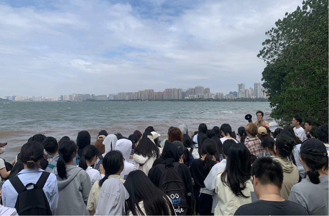 10月28日上午,实习队伍来到北仑河口。北仑河口位于我国大陆海岸线的最西南端,地理位置独特。这里拥有丰富的自然资源和多样的地质地貌景观,为地理地质专业的学生提供了一个绝佳的实习场所。同学们对北仑河口的海岸地貌进行了考察,分析北仑河口区低潮带到高潮带,滩面物质组成由细砂到细粉砂、淤泥。红树林发育地区,滩面淤涨,沉积物质粒径逐渐变细。红树林在中潮带的泥质滩最为繁盛,该位置土壤呈弱酸性,电导率较强;而相同的气候条件下,水动力是影响红树林分布的重要因素。同学们通过观察海岸地貌的形态和特征,分析了海浪、潮汐等海洋动力对海岸地貌的影响,以及海岸地貌的演变趋势。