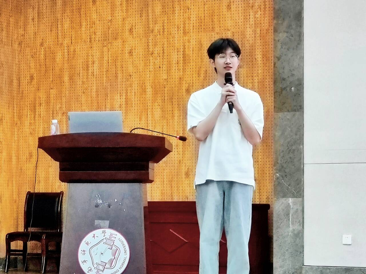 报告会由廖伟业老师主持,首位主讲嘉宾侯刘起老师以“从合格到优秀,路还有多远?”为主题,结合《中学教师专业标准》,系统阐述了教师专业发展的阶段性特征。他通过起步、发展、品质阶段理论,生动分析了新手教师到专家型教师的成长轨迹,并强调“教学与科研并重”的发展理念。侯老师特别分享了乡土地理课程开发、课堂教学策略优化等实践经验,鼓励同学们在本科阶段夯实专业基础,培养教研能力。紧接着,郭金沙学长作为第二位主讲嘉宾登台,他聚焦于“如何备好一节‘地理’课”,现场展示了“野生动物保护”跨学科教学案例,从课标解读、教材二次开发及教学设计等七个方面展开系统指导。最终,以“让你的地理课堂是‘地理’课堂,让学生永远期待下一次地理课堂”作结,激励同学们打造富有地理学科特色与魅力的课堂,为本次报告会画上了精彩的句号。