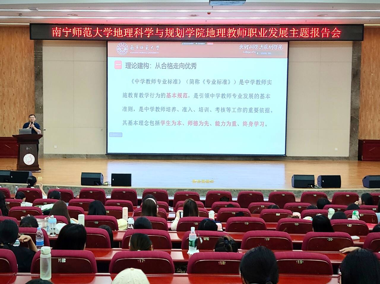 为提升我院地理科学专业学生的教师职业技能,促进职业规划与发展,地理科学与规划学院于5月30日下午14:30在武鸣校区图书馆报告厅成功举办了“地理教师职业发展主题报告会”。此次活动面向23级地科学生及22级地科专升本学生展开。
