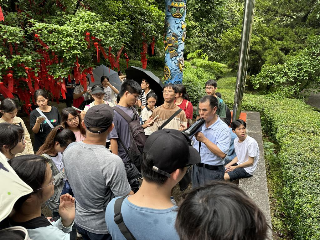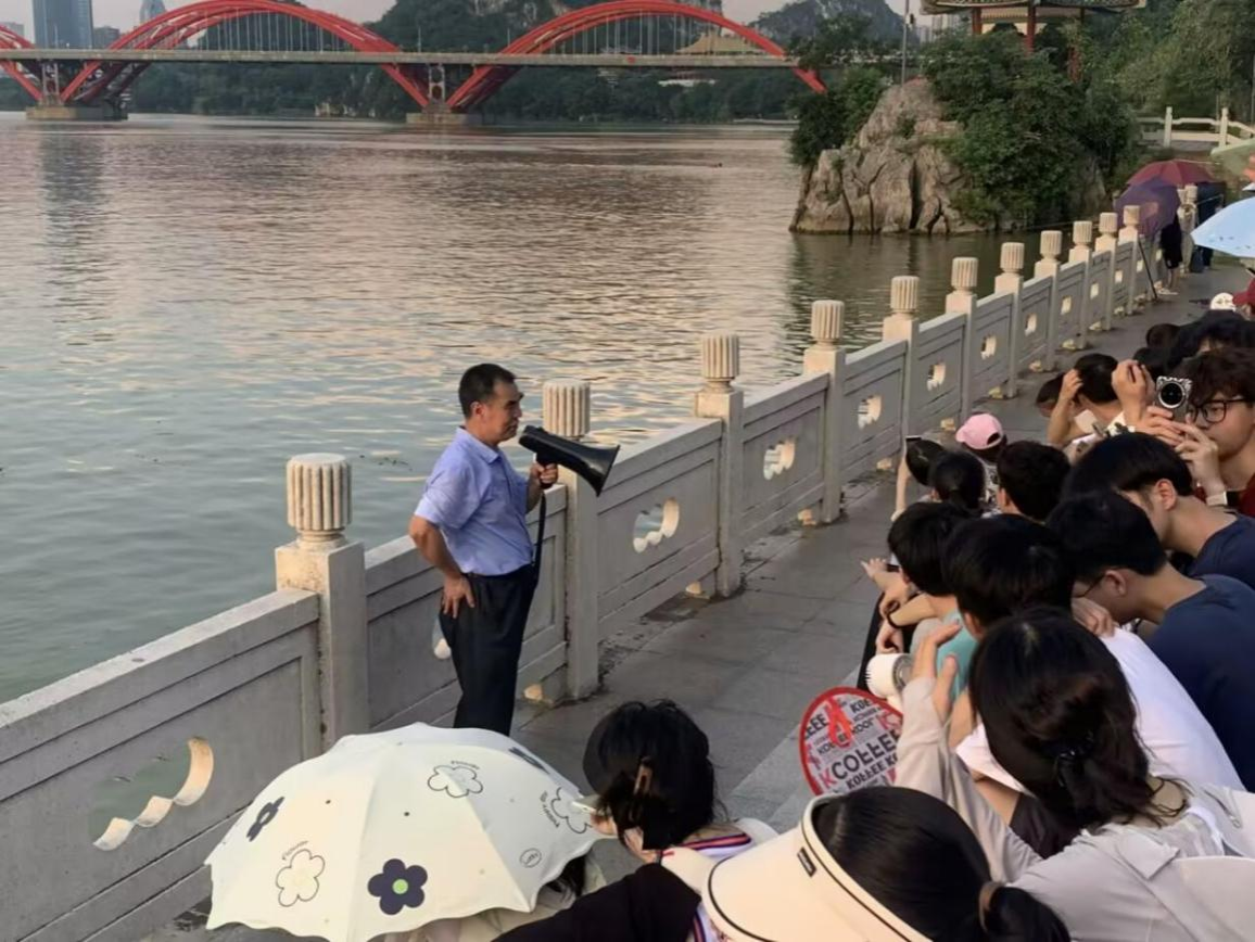 5月19日下午,同学们来到第一个实习点龙潭公园,地处柳州市区南部,是集喀斯特自然山水景观和中国南方少数民族风情文化为一体的大型风景游览区。在园区漫步的过程中,李忠标老师为同学们解读了柳宗元的《雷塘祷雨文》,并讲解了柳宗元与柳州的深厚联系,进一步加深了同学们对柳州文化的了解。