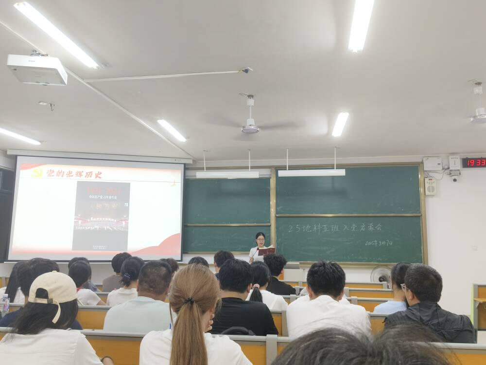 9月17日,地理科学与规划学院2025级地科五班在武鸣校区实验楼2号楼A202教室开展入党启蒙教育。本次会议由驻班党员韦露媛同志主持,班级全体同学参加。