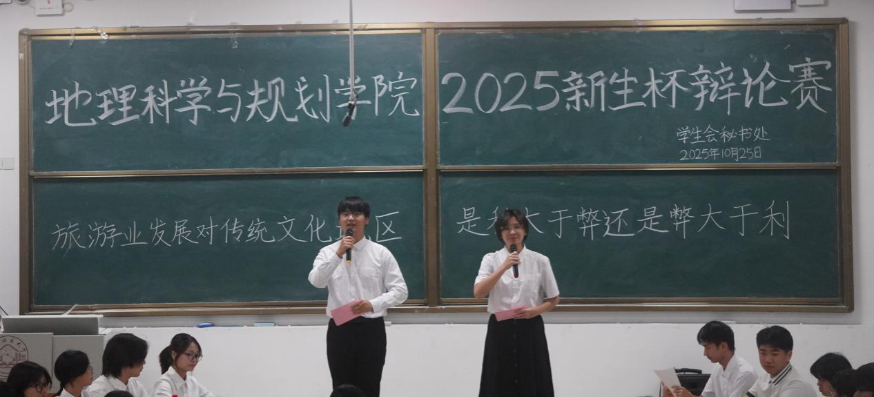 为激发同学们的学术思辨热情,提升逻辑表达与团队协作能力,地理科学与规划学院于10月25日在武鸣校区1号教学楼121教室成功举办第十届“新生杯”辩论赛。本次辩论赛以“思辨交锋展风采,笃行求索绽青春”为主题,由邵明辉、陆春璟两位同学共同主持。活动特邀地理学院兼职辅导员杨丽华、黄小作为嘉宾,院主持团代表冯悦彤、院辩论队代表袁哲等6人共同组成评委团。学院约180名学生到场观摩学习。