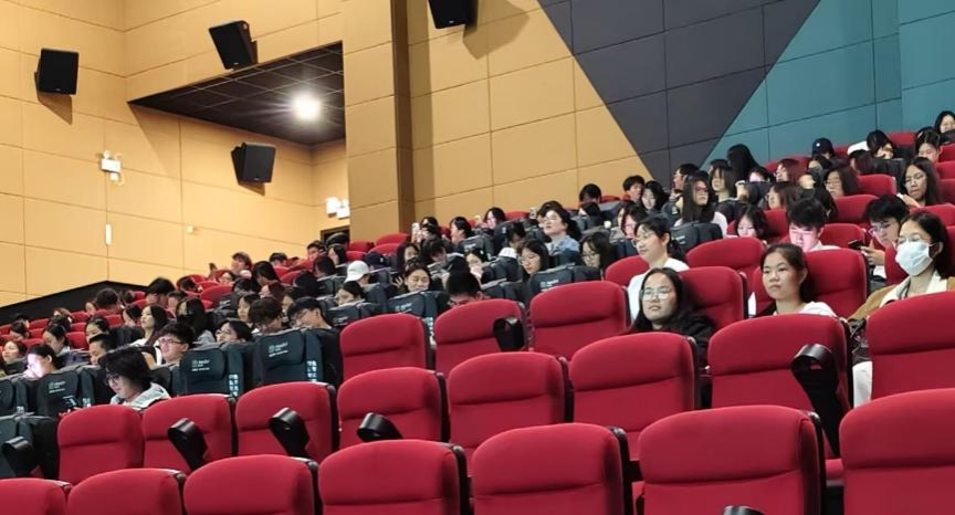 观影前,学生党员有序抵达影院并自觉完成签到。主持人围绕活动主题,阐述了本次观影的教育意义与时代价值,强调了作为党员应具备的历史自觉与责任意识,并对观影纪律提出明确要求。
