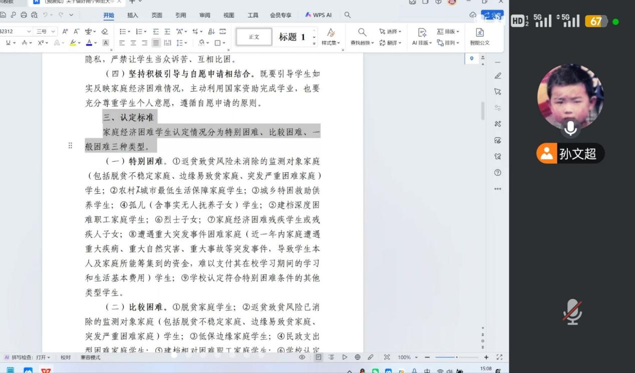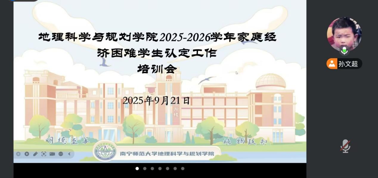 9月21日下午,地理科学与规划学院勤工部顺利召开家庭经济困难学生认定培训工作线上会议。本次会议由孙文超老师主持,学院盛凯副书记出席并提出工作要求,勤工部学生负责人及22-25年级各班级资助委员共同参会,为后续认定工作规范、有序推进夯实基础。