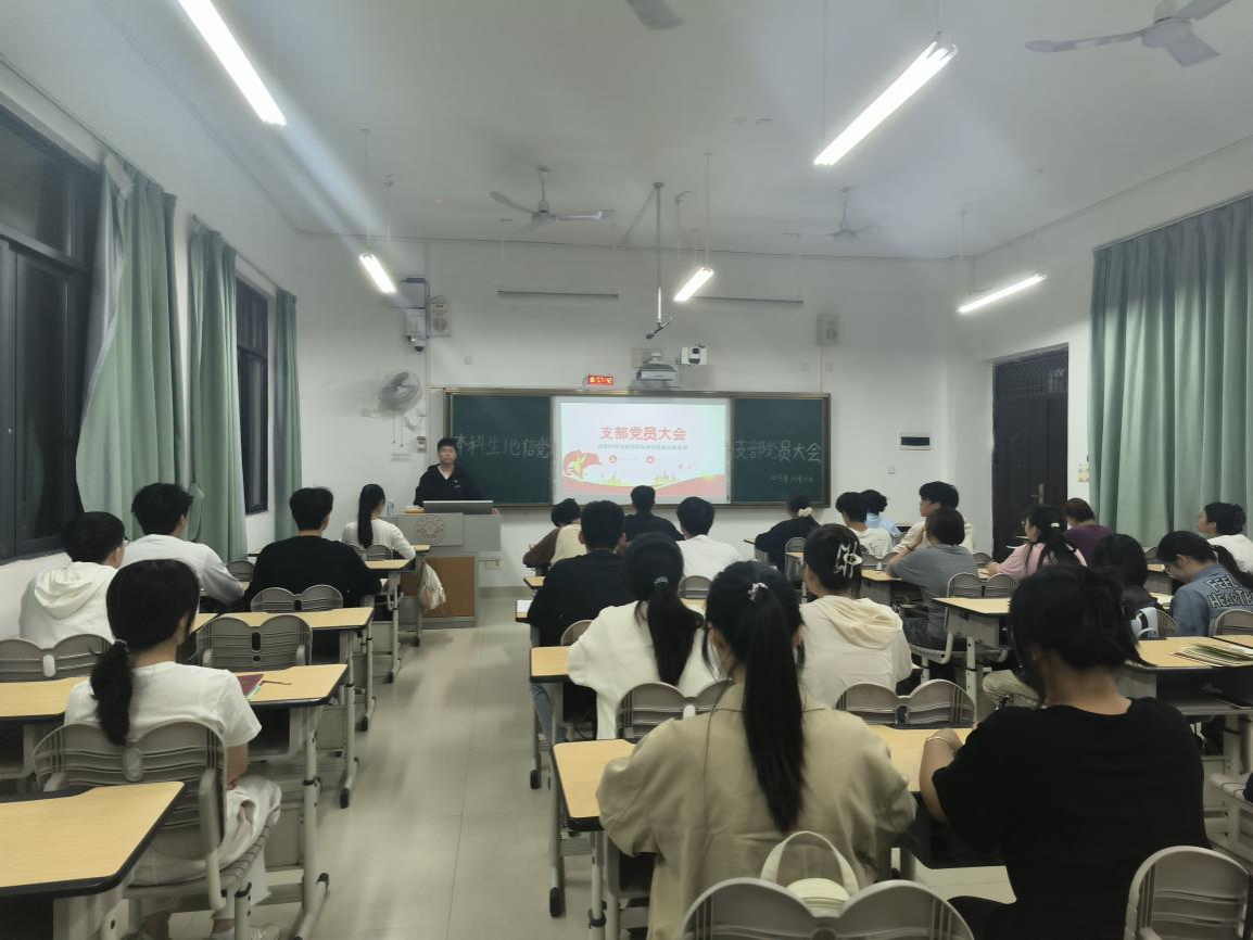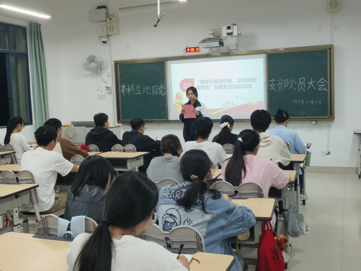 10月26日,地理科学与规划学院本科生地信党支部于武鸣校区1号教学楼302教室召开支部党员大会。会议由党支部书记于志强同志主持,全体党员参会。