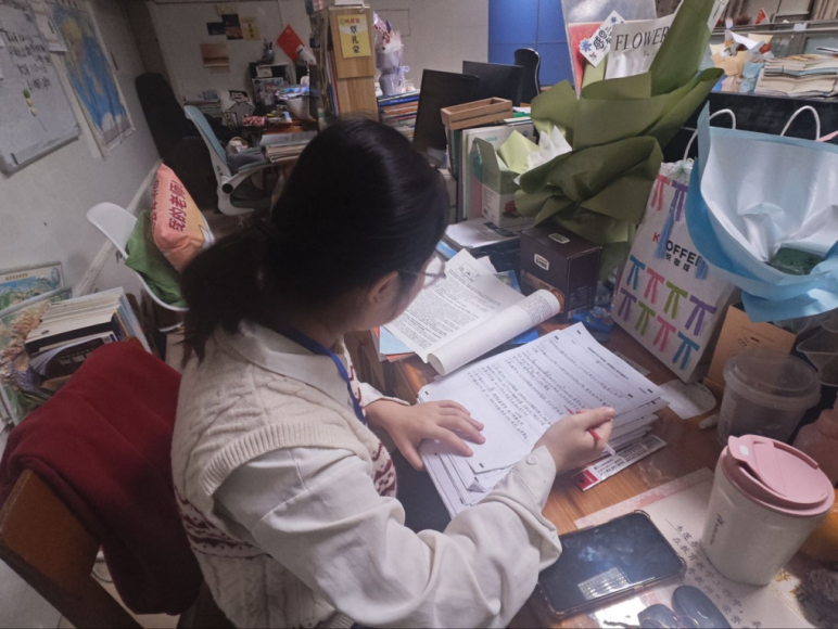 (实习教师于备课室内集体备课)