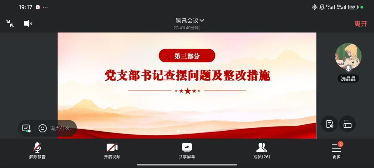 (冼晶晶书记对党支部存在问题提出整改措施)