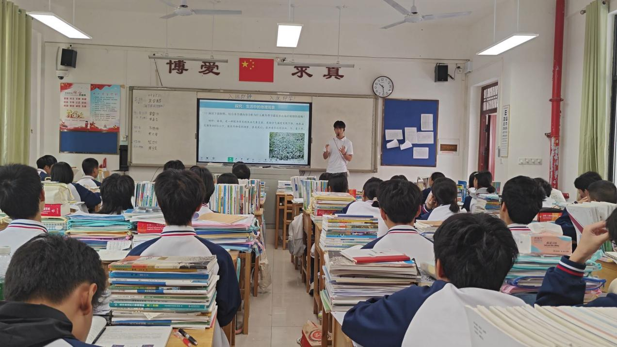 课堂上,实习老师秉持“以学生为中心”的理念,独立承担高一年级地理课程教学任务。他们结合地理学科特点,用地图、多媒体演示、经典地理案例等实用素材,把难懂的知识点变得生动直观。授课时,实习老师会积极引导学生思考,组织小组讨论探究,密切关注学生的反应,灵活调整讲课节奏。遇到学生突然提出的疑问,也能用上提前准备的不同讲解方法,快速解惑,既完成了教学目标,又让课堂氛围变得活跃,帮助学生更好地掌握地理知识。