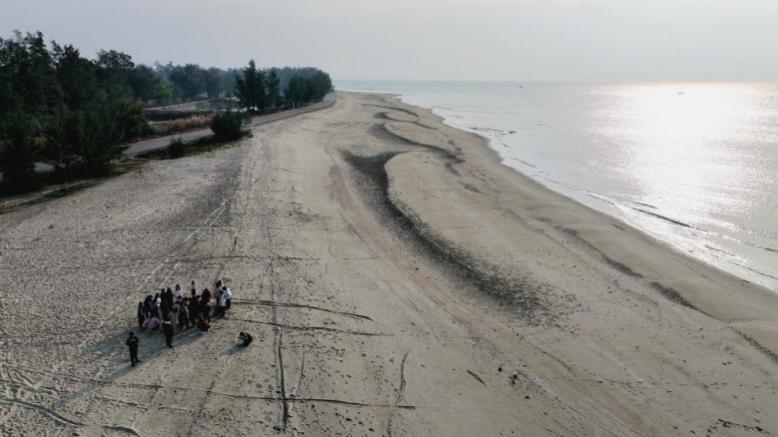 实习第二天,同学们来到金滩,观察金滩数十年的变化。受人类活动影响,金滩的沙子质量也在逐年下降,同时沙子也在减少。大家踏上寻沙的旅程,探寻海洋魅力,并深入思考人类活动、旅游业与自然环境的相互关系,以及如何在保持经济发展的情况下减少对自然的伤害等问题。