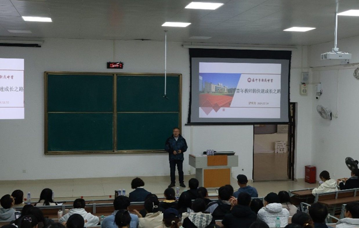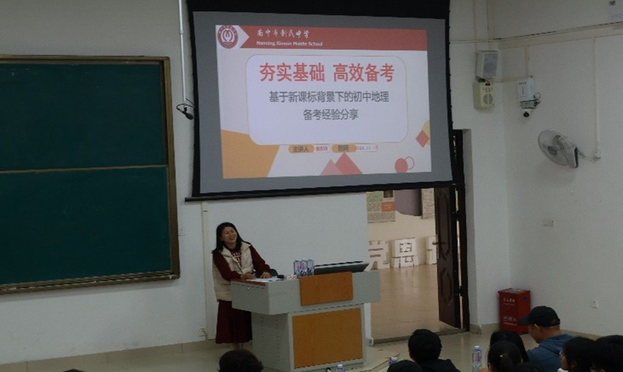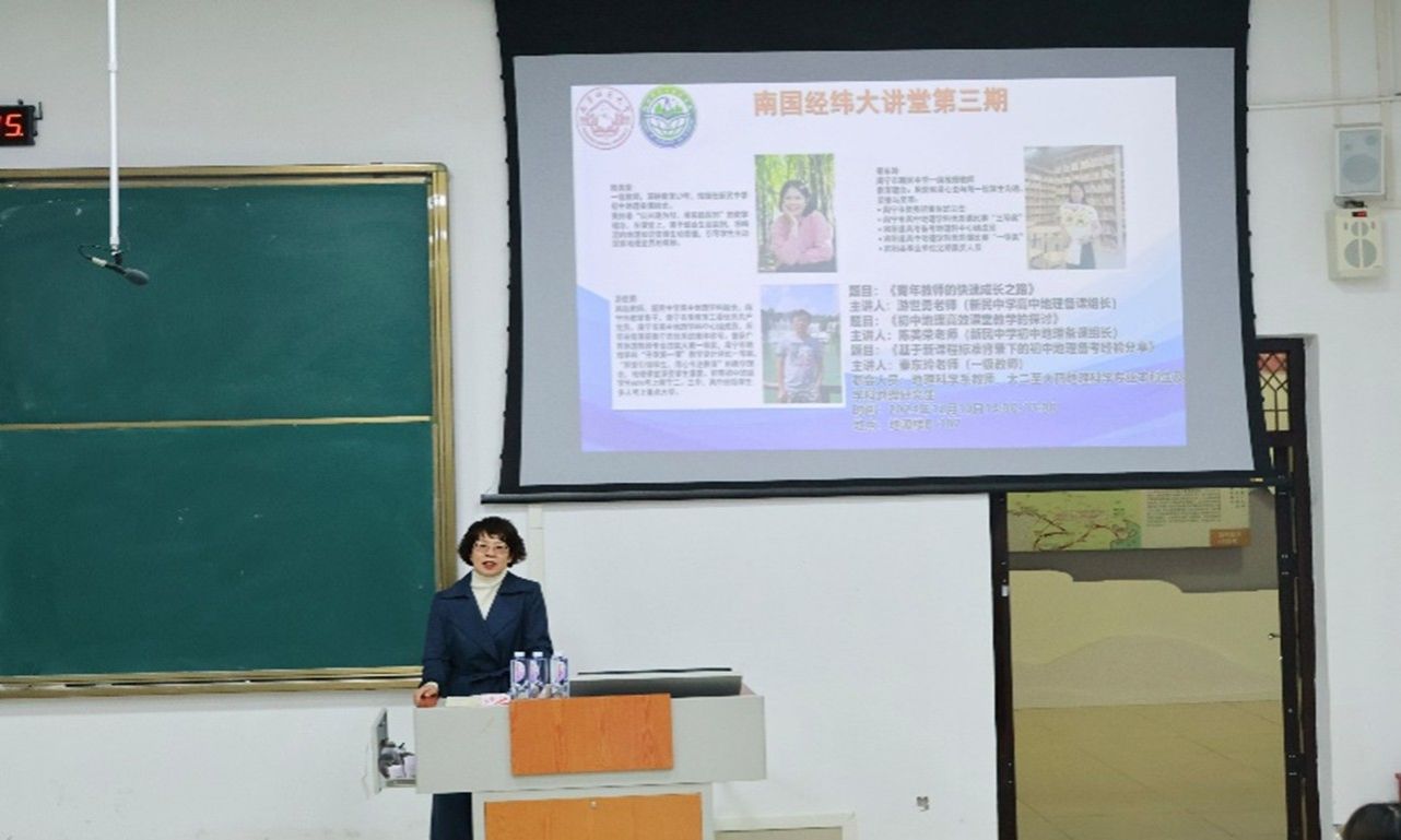 2024年12月10日,地理科学与规划学院邀请了南宁市新民中学初中地理备课组长陈美荣、一级教师秦东玲、高中地理备课组长游世勇老师在武鸣校区地源楼B-107教室开展了“初中地理高效课堂教学的探究”、“基于新课程标准背景下的初中地理备考经验分享”与“青年教师的快速成长之路”的报告讲座。此次报告会由地理科学系主任宋立全和副主任韦晨策划、宋立全主持,地理科学系教师、大二至大四地理科学专业本科生及学科地理硕士研究生参会。