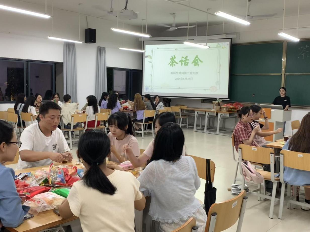 5月31日,地理科学与规划学院本科生地科第二党支部在武鸣校区实验2号楼C104教室召开茶话会。茶话会由黄小同志主持,支部全体成员参会。