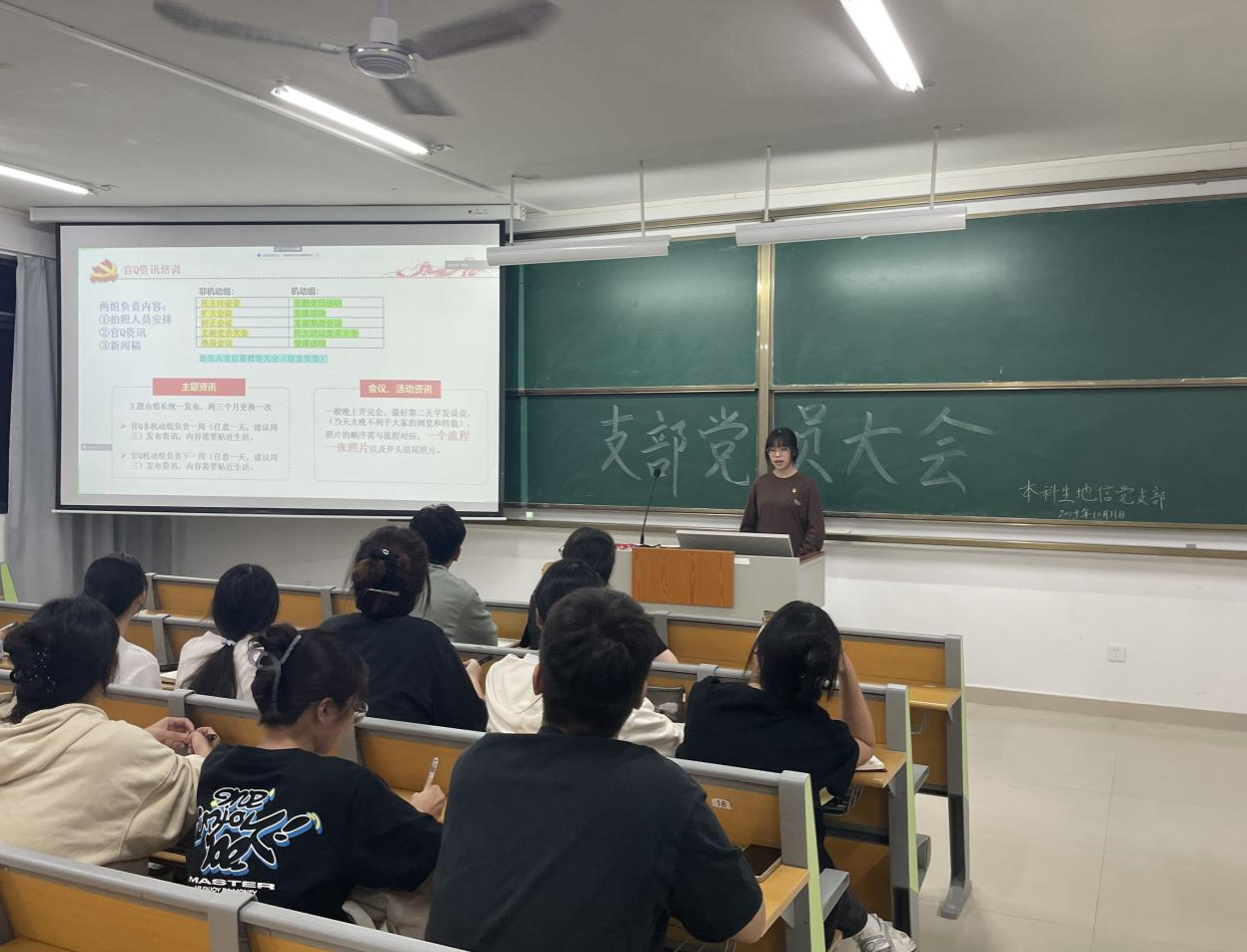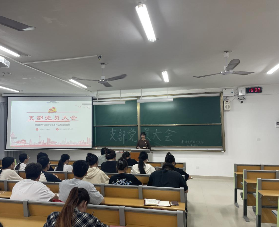 2024年10月31日,地理科学与规划学院本科生地信党支部在南宁师范大学武鸣校区实验楼2-A201召开支部党员大会,会议由支部宣传委员方家鑫同志主持,全体党员参会。