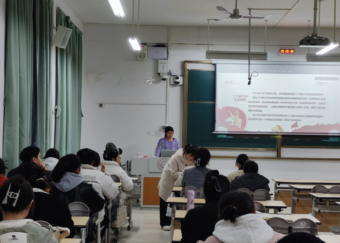 2024年12月27日,地理科学与规划学院研究生第一党支部在武鸣校区1号教学楼219教室开展“学习贯彻党的二十届三中全会”主题党课。会议由劳晓帆同志主持,支部全体党员参与。