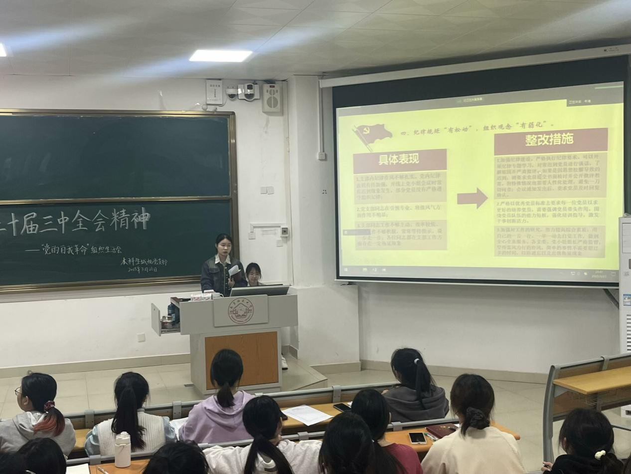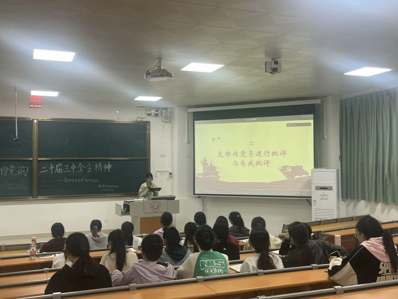2025年3月21日,地理科学与规划学院本科生城规党支部在武鸣校区2号教学楼109教室顺利召开2024年度组织生活会暨民主评议会。会议由韦巧慧同志主持,支部全体党员参会。