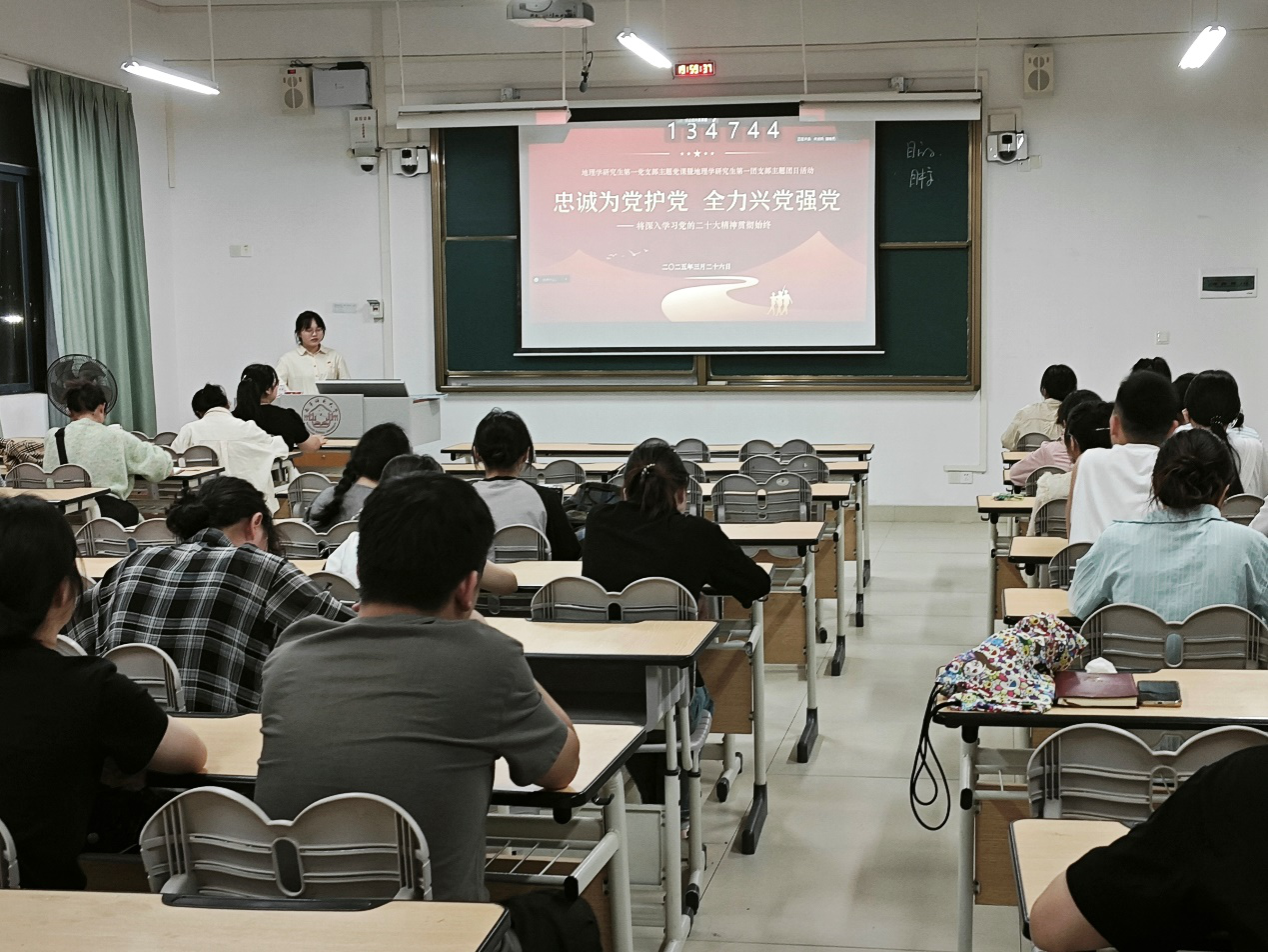 2025年3月26日,地理科学与规划学院地理学研究生第一党支部在武鸣校区2号教学楼316教室召开“忠诚为党护党,全力兴党强党”为主题的党课学习。会议由陆艳妮同志主持,支部全体党员和团员参与。