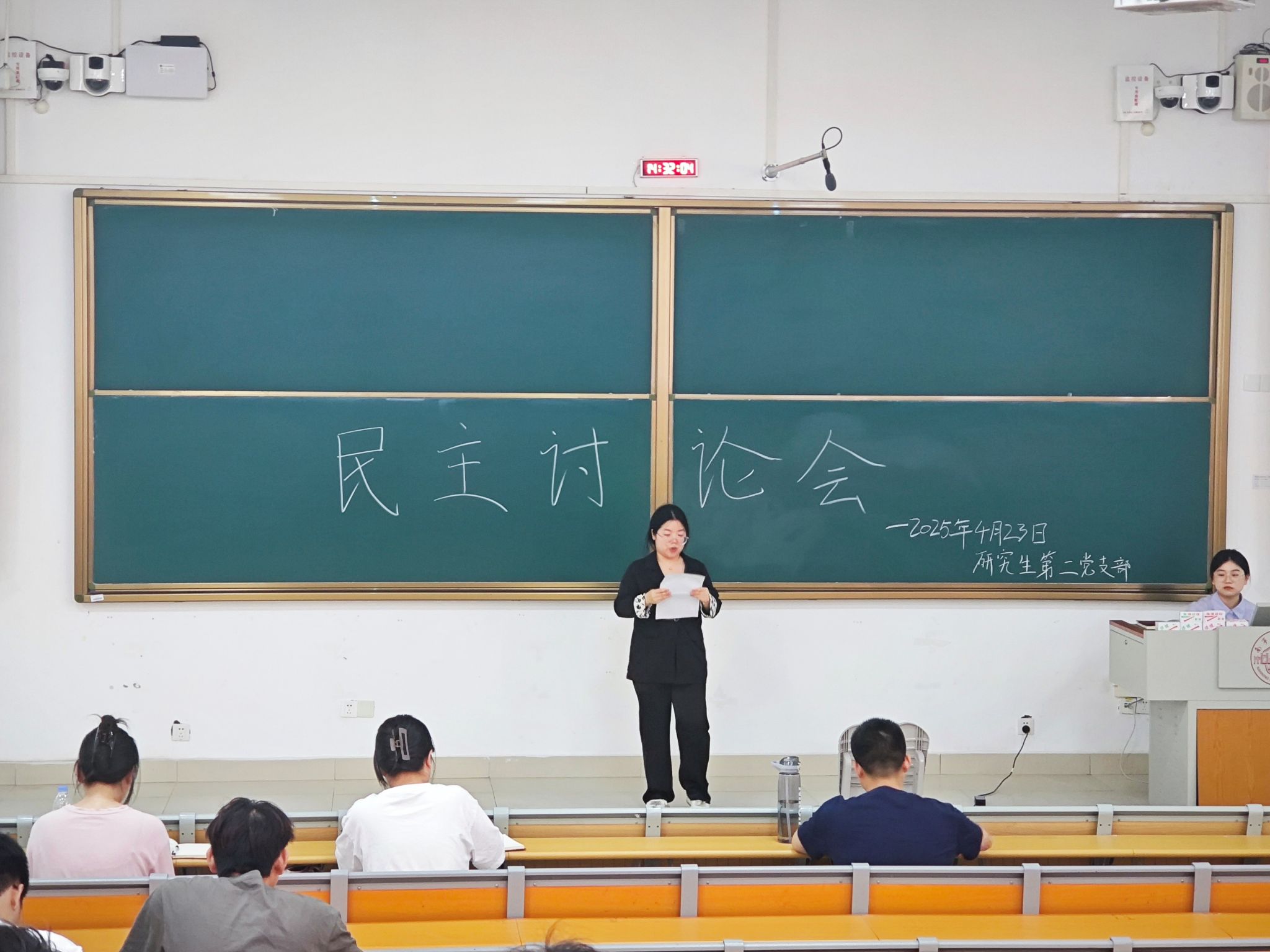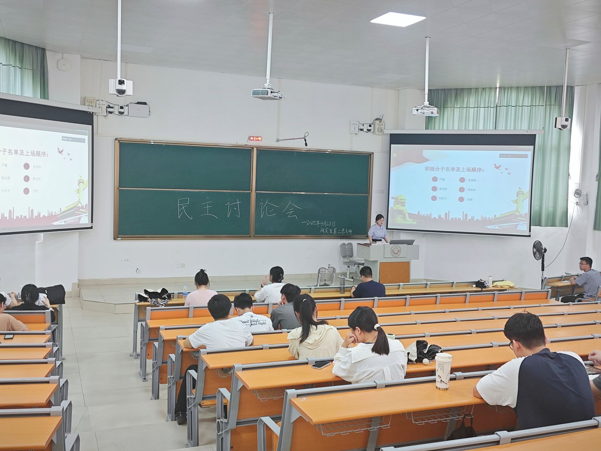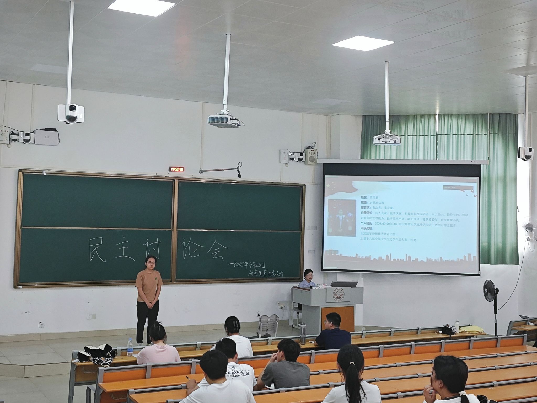 4月23日,地理科学与规划学院地理学研究生第二党支部在武鸣校区1号教学楼215教室成功开展民主讨论会,就党湛皓等6名积极分子入党问题展开深入评议,充分发扬党内民主,严把党员发展“入口关”。 会议由支部副书记龙璐瑶同志主持,全体支部成员共同参与。