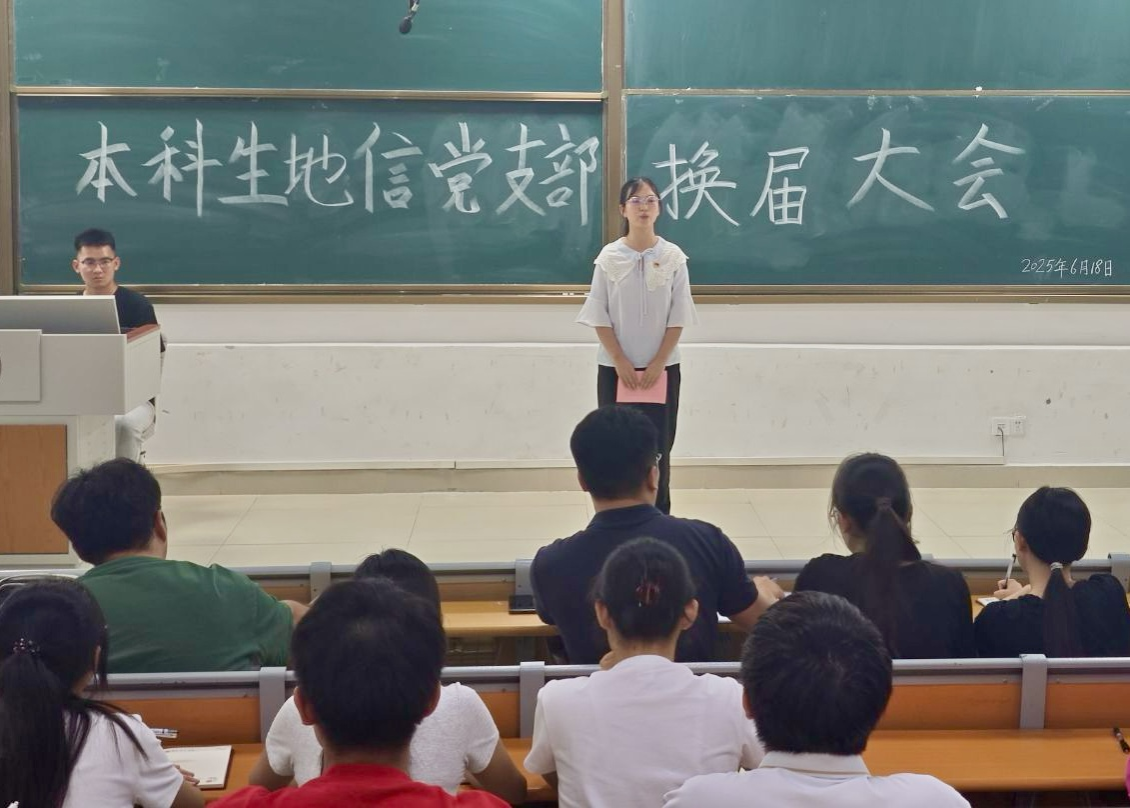 6月18日,地理科学与规划学院本科生地信党支部在武鸣校区1号教学楼114教室召开支部委员换届大会。本次会议由党支部宣传委员方家鑫同志主持,支部全体党员参会。
