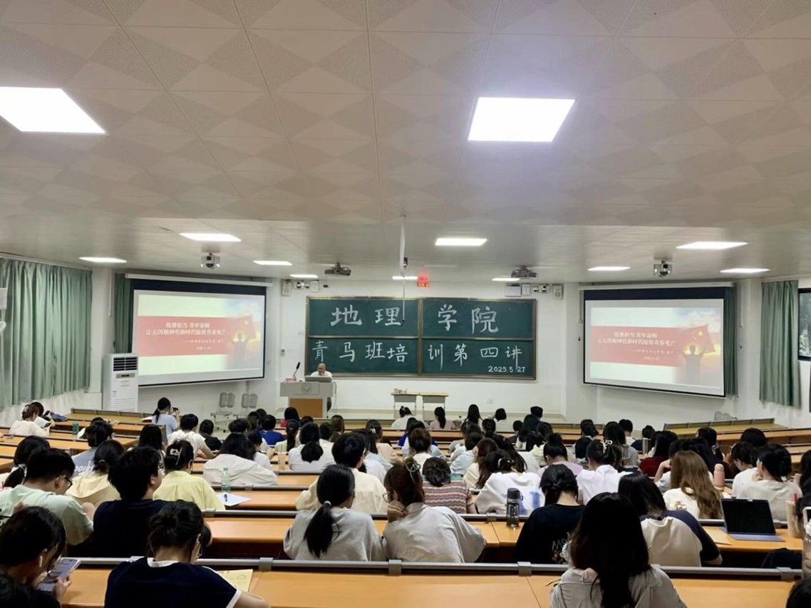 5月27日晚上,地理科学与规划学院在武鸣校区2号教学楼121教室开展2025年“青马培训班”暨学生骨干培训会第四讲,本次培训以“挺膺担当,青年奋楫——让五四精神在新时代绽放青春光芒”为主题,邀请旅游与文化学院姜宁老师主讲。
