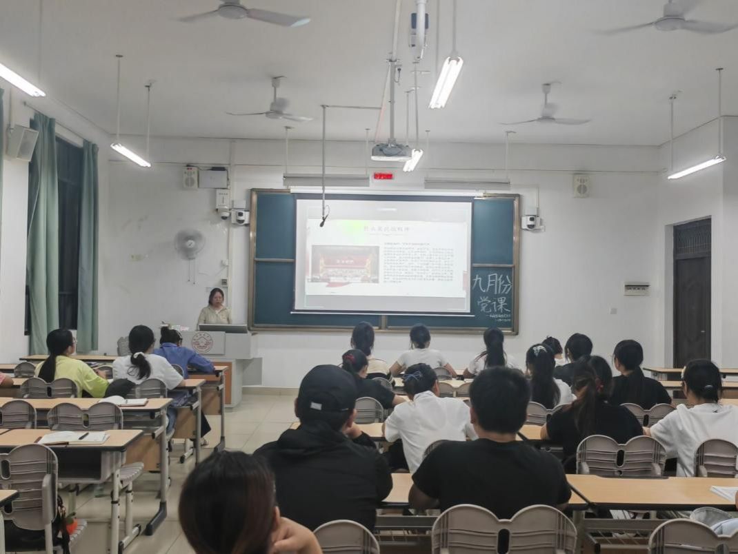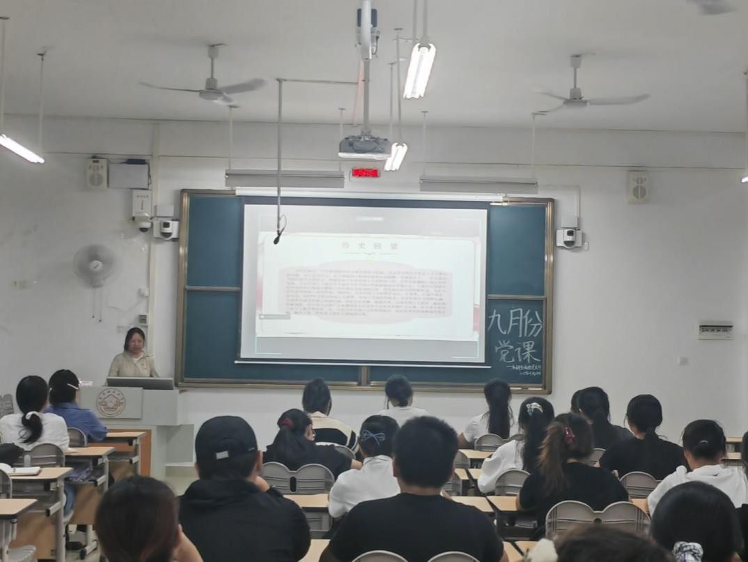 9月24日,地理科学与规划学院本科生城规党支部在武鸣校区1号教学楼218教室开展“赓续抗战精神血脉 奋进新时代壮阔征程”主题党课。此次党课由杨欣琳同志主持,党支部全体党员及积极分子参会。