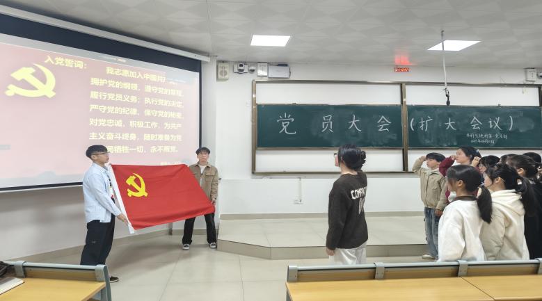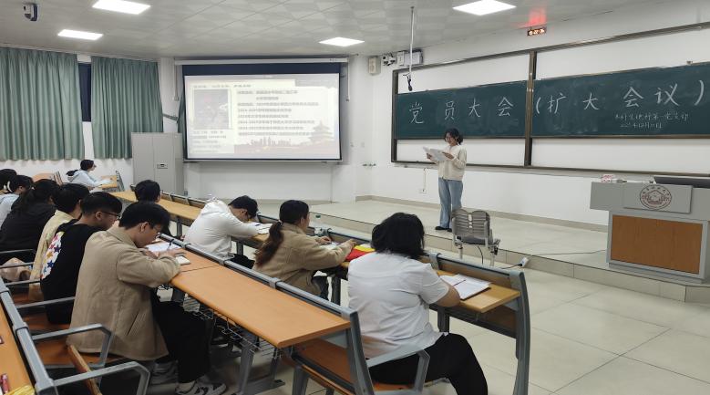 12月10日,地理科学与规划学院本科生地科第一党支部在武鸣校区2号教学楼109教室召开2025年下半年扩大会议。此次会议由党支部组织委员胡佳琦同志主持,党支部全体党员及23名发展对象共同参会。