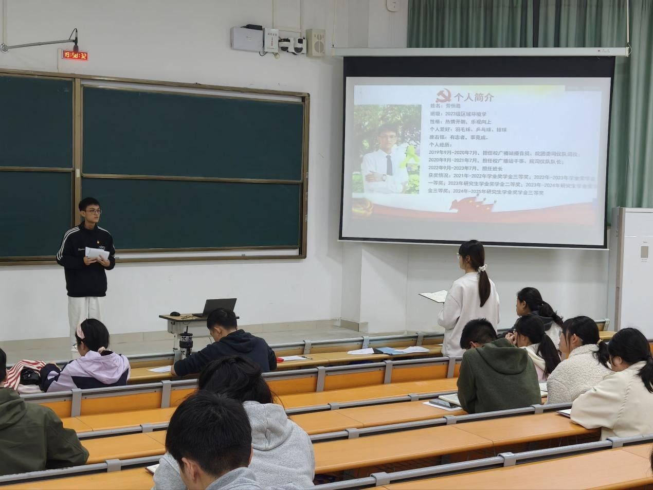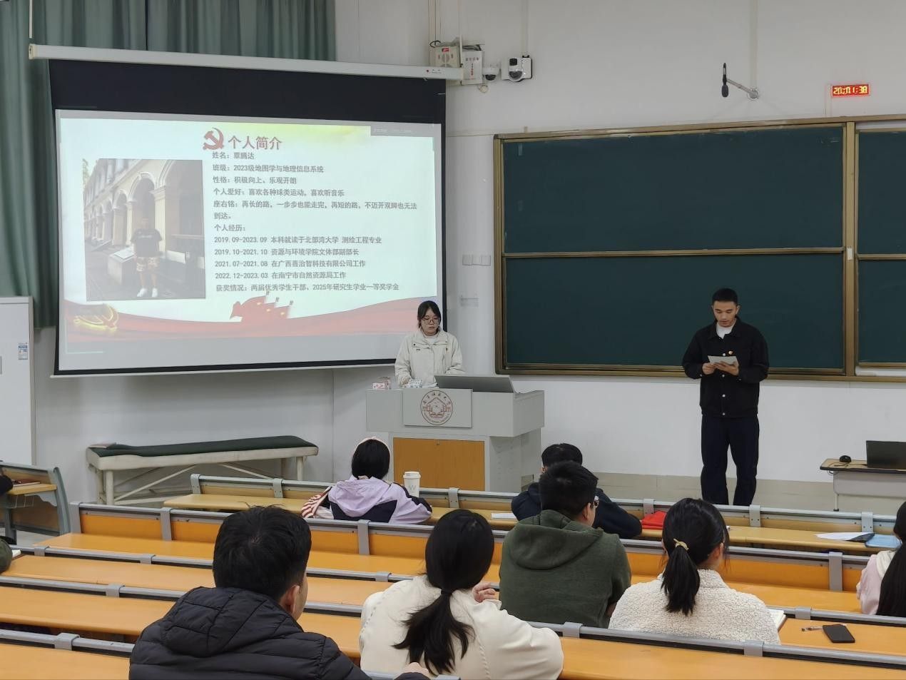 12月22日,地理科学与规划学院地理学研究生第二党支部在武鸣校区1号教学楼214教室顺利召开预备党员转正会议。此次会议由党支部副书记覃莫子慧主持,党支部全体成员参会。