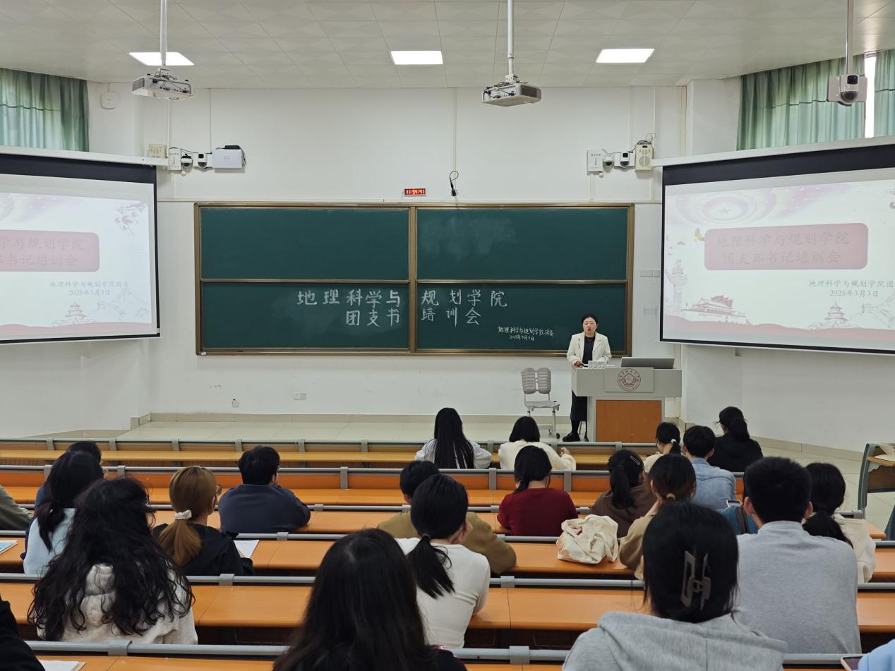 2025年3月3日,地理科学与规划学院团委在武鸣校区一号教学楼215教室开展团支书培训会。会议由学院团委书记蔡琪主持,学院全体学生团支书参加。
