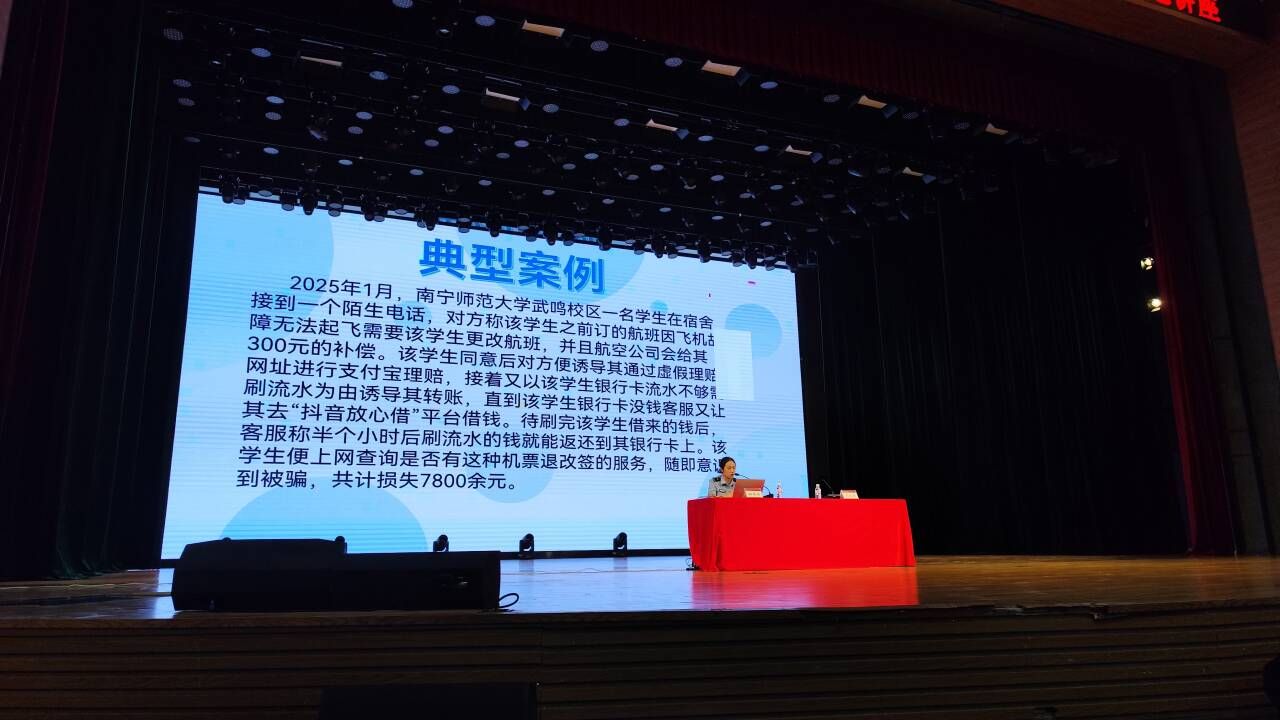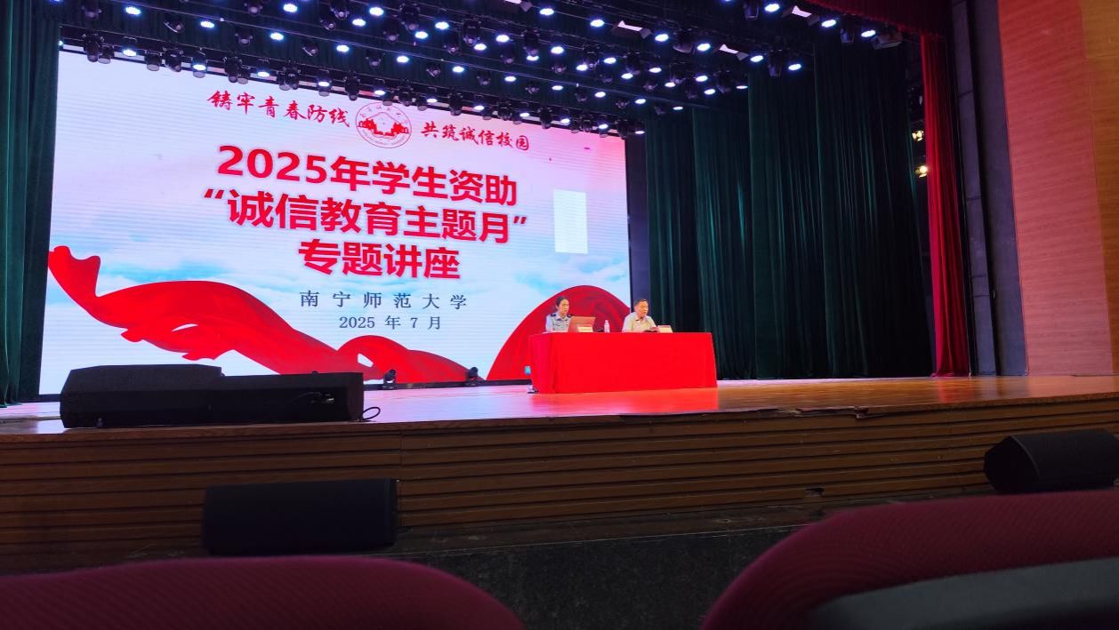 为加强诚信教育,提高资助育人成效,7月2日,南宁师范大学举办2025年学生资助“诚信教育主题月”专题讲座,并邀请南宁市公安局武鸣分局反诈中心民警邓幸梓到场主讲。地理科学与规划学院组织学生积极报名参加,最终共50名受助学生参加此次讲座。